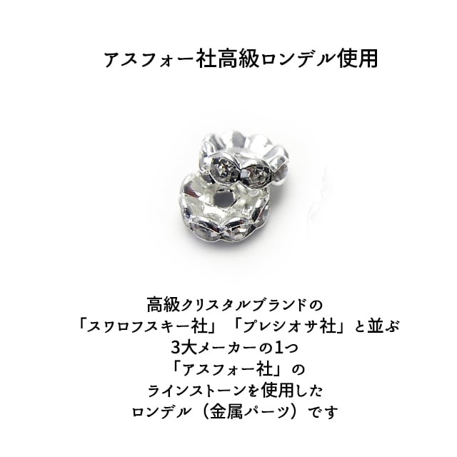 こちらは、高級クリスタルブランドの「スワロフスキー社」「プレシオサ社」と並ぶ3大メーカーの1つ「アスフォー社」のラインストーンを使用したロンデル(金属パーツ)です。